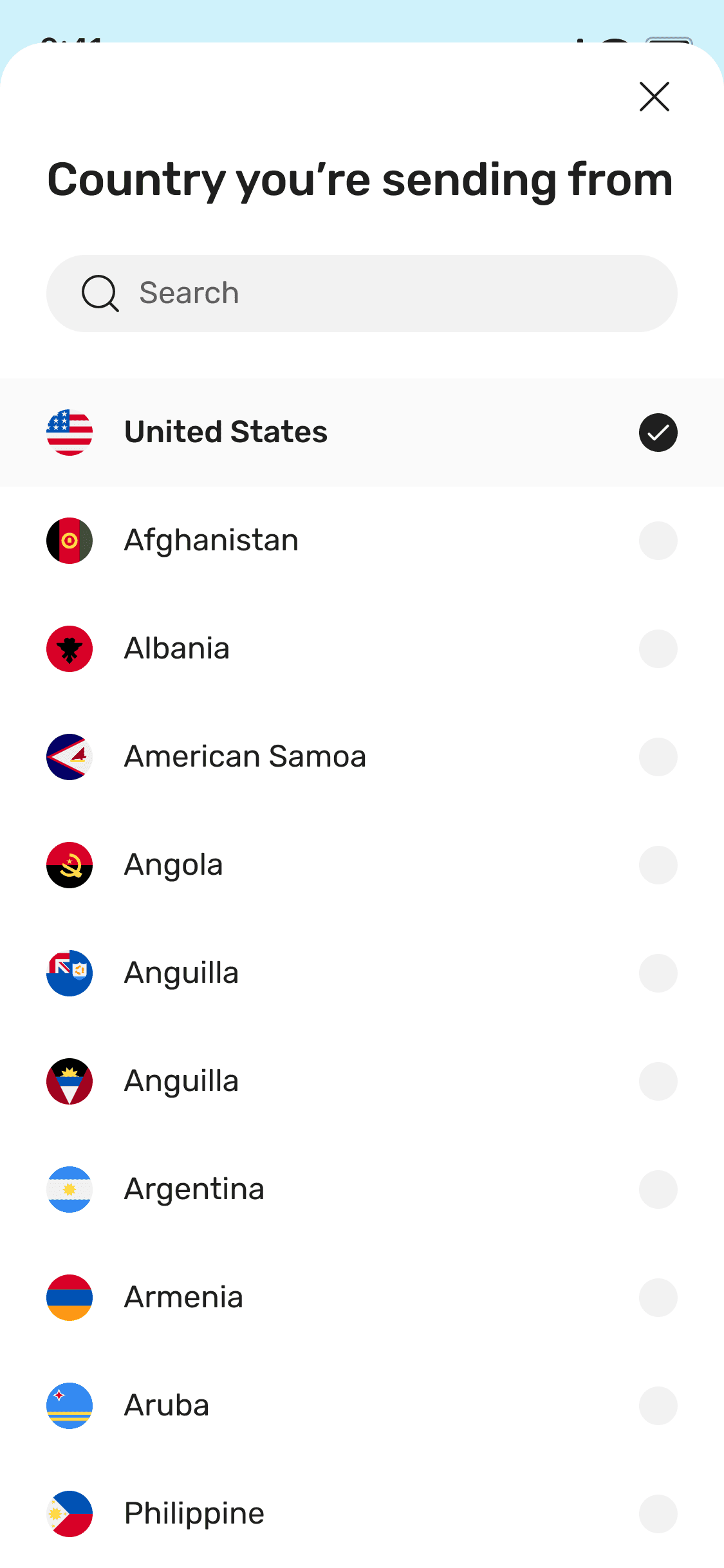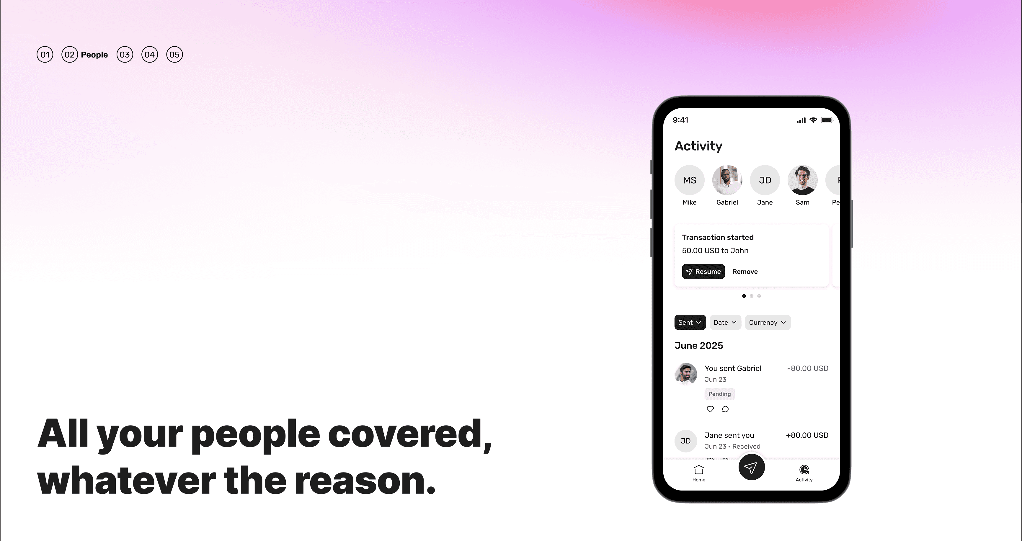 Send money in app